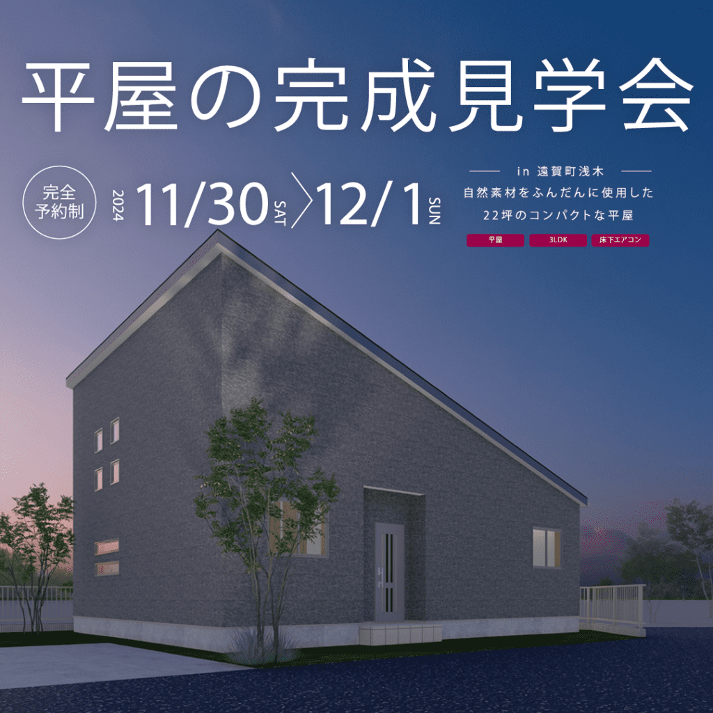 この度、お施主様のご厚意により遠賀町浅木にて「平屋の新築完成見学会」を開催することとなりました!