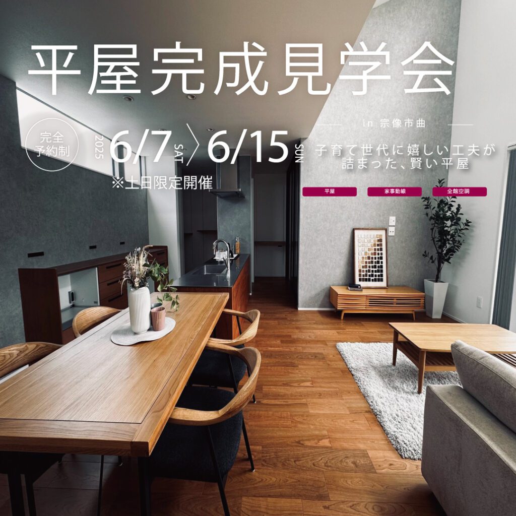 この度、お施主様のご厚意により宗像市曲にて「完成見学会」を開催することとなりました!