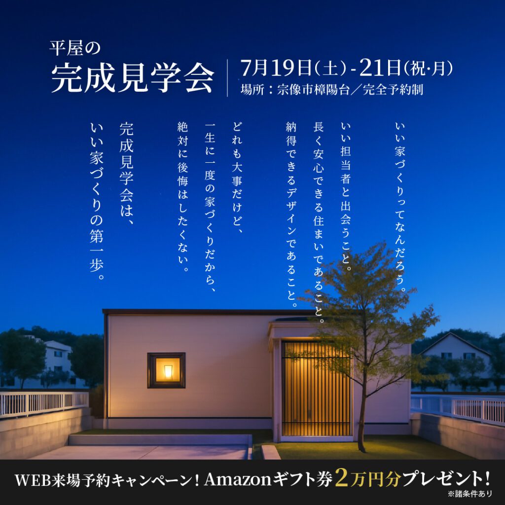 この度、お施主様のご厚意により宗像市樟陽台にて「完成見学会」を開催することとなりました!