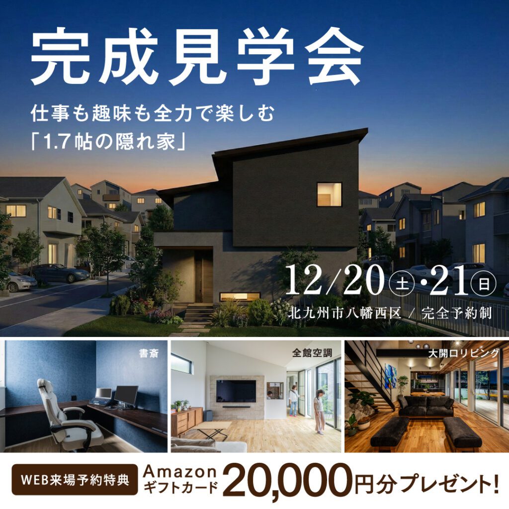 この度、お施主様のご厚意により北九州市八幡西区にて「平屋の完成見学会」を開催することとなりました!