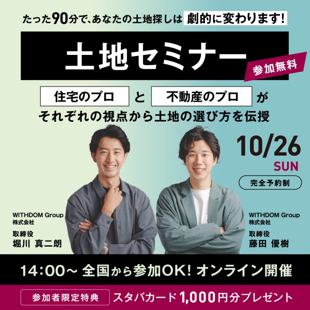 このセミナーは、そんなあなたのための「後悔しない土地選び」の羅針盤です。