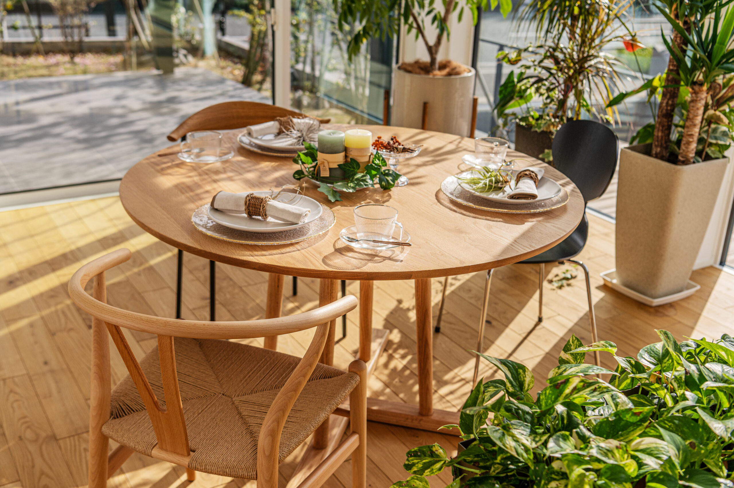 飾らない且つ洗練されたデザインを、季節の植物が彩る。