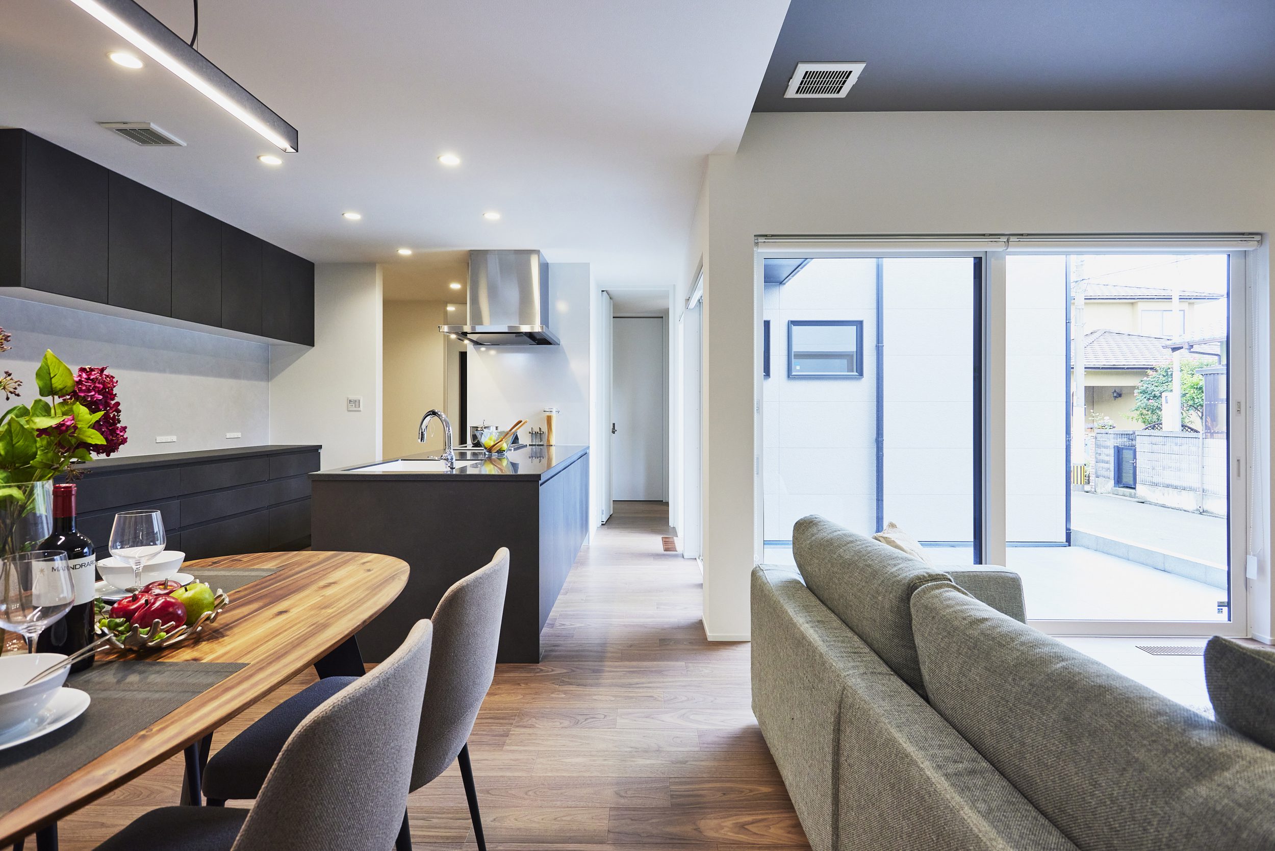 そして、窓枠は景色を絵画のように切り取る極細タイプを採用し、空間にアートな彩りを与えます。